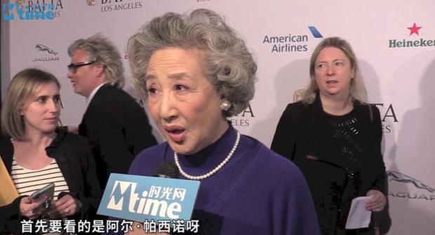 作为现场罕见的华语媒体,奥卡菲娜和赵淑珍老师与时光网记者见面时显得尤其激动,赵淑珍表示去金球奖最大的愿望是见阿尔·帕西诺,因为自己是他的“迷妹”。奥卡菲娜形容她获得提名“有一种灵魂出窍的感觉”,而在刚刚落幕的金球奖中,她也如愿得奖!