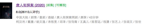 目前,该剧豆瓣评分8.0,高于“唐探”系列电影。而当这部网剧落幕,就是电影《唐人街探案3》上映之日,“唐探”之风就这样吹了一整个冬天。