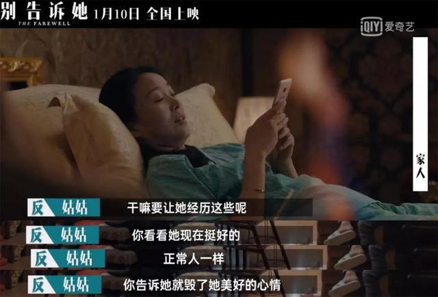 小时候就来美国生活、习惯了美式思维的碧莉不理解父辈们的选择,在她看来,奶奶对自己的疾病有知情权。但碧莉的父母告诉她,向病重病人隐瞒病情,是中国的传统,这是避免病人承担压力,是“善意的谎言”。