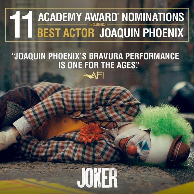 时光网讯第92届奥斯卡金像奖提名宣布后,多部影片发布提名喜报。包括提名最多11项的《小丑》,提名10项的《爱尔兰人》《好莱坞往事》《1917》,提名6项的《小妇人》《乔乔兔》《寄生虫》,提名4项的《极速车王》等。而提名了最佳视觉效果1项的《复联4》也郑重发了海报庆贺。