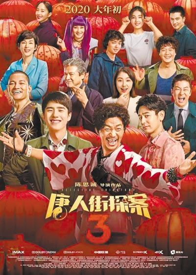 从2015年开始到2020年,能拍到第三部,而且能电影、剧集两开花的国产IP不多,《唐人街探案》算一个。能在大年初一,把喜欢图吉利的中国观众请进电影院看凶杀案,除了《唐人街探案》,也没有其他哪部电影能做到。《唐人街探案》的成功要诀,就是用喜剧元素的包装,把侦探片这一小众类型大众化。因此我们看到的关于《唐探3》的预告片,对案件本身着墨并不多,依旧是喜剧+悬疑,紧张+笑料的画风。