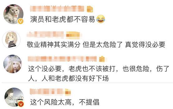 不过,也有网友说演员和老虎都不容易,虽然演员敬业但是太危险了,没有必要。↓