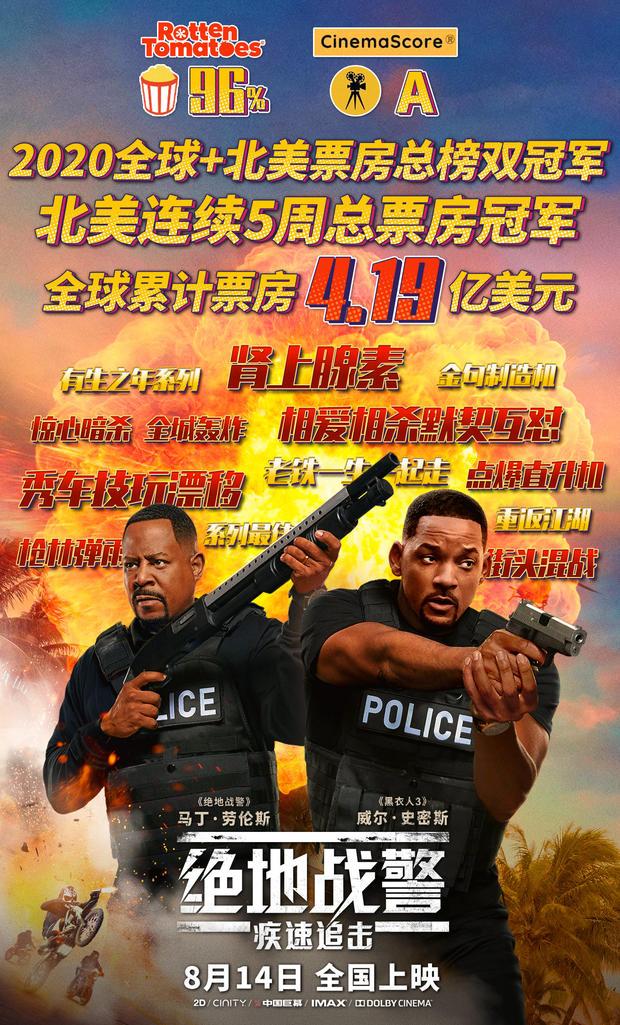 电影自海外及北美上映以来,票房、口碑双丰收,截止目前北美收获2.04亿美金票房,全球票房收获超4.19亿美金,成功卫冕2020年开年至今全球及北美票房冠军。