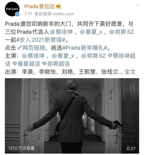 不过目前,PRADA官方微博删除了涉及郑爽单人微博,只保留带有蔡徐坤、春夏、郑爽三人的微博。1月19日,有网友发现郑爽也删除了自己代言PRADA的微博,此前她还将这条微博置顶。