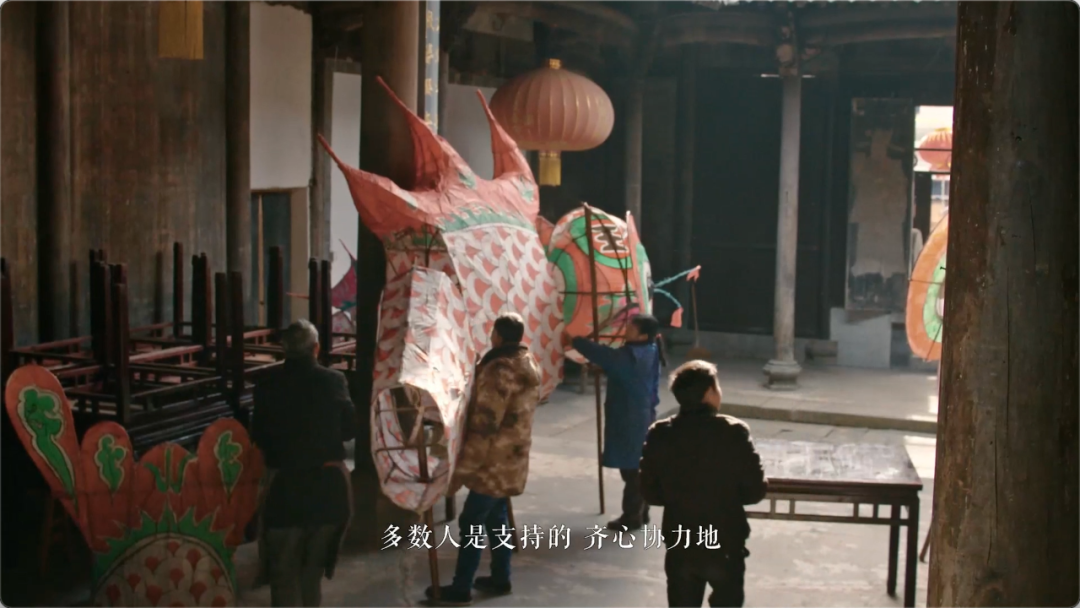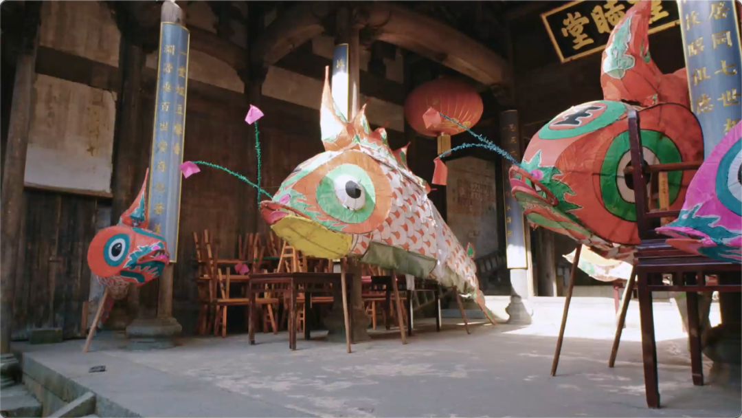 即便短片最后,鱼灯因为种种原因会无法如期举办,村民们仍然坚持将鱼灯整齐摆放在祠堂里。