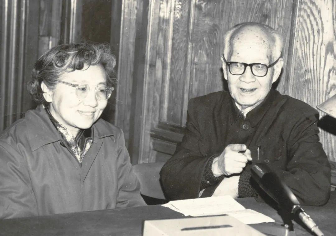 康瑛老师(左)和孙敬修老师为《小喇叭》录制节目。
