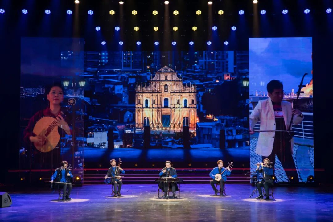 从传统经典《彩云追月》《万马奔腾》《步步高》《社庆》,到流行新编《刀剑如梦》《卧虎藏龙》《国乐新摇滚》,从湾区名曲《七子之歌+弯弯的月亮+东方之珠》,到家国颂歌《黄河》......沉浸式的国风舞美,时而婉转悠扬时而激昂高燃的曲调,引领观众开启一程以国乐为桨的古今漫溯。