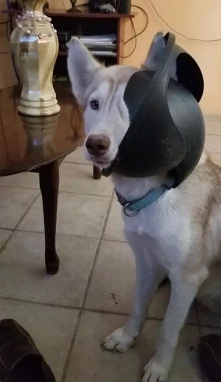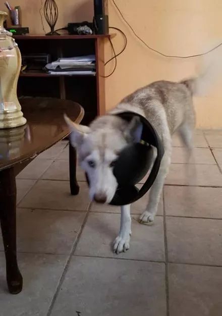 哈士奇偷跑出门,可回来后头上居然多了个东西