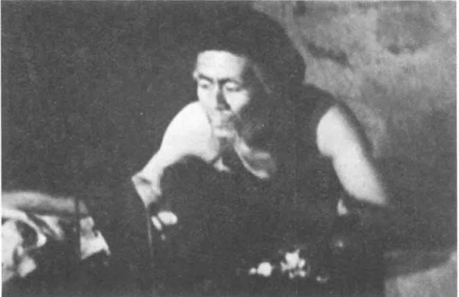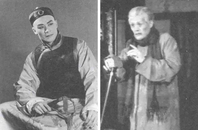 1944年17岁时第一次登台演话剧,图为19岁时,饰演一位老更夫