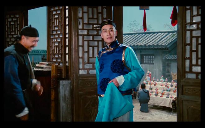 1982年电影版《茶馆》,蓝天野饰演的秦二爷出场