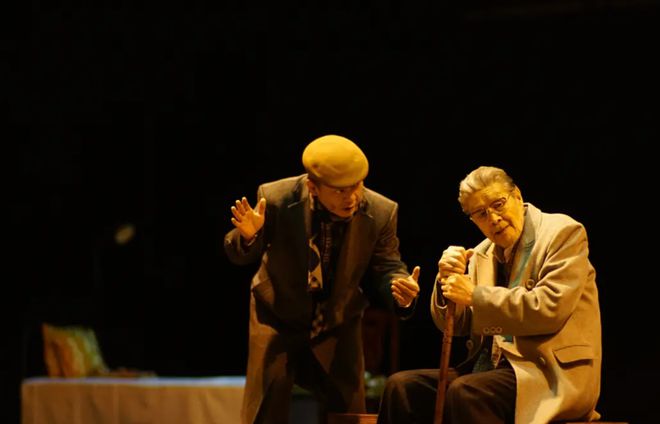 从最初排练到后来演出,我觉得他是有变化的,他让“老金”变得更加生活化了。天野老师他是有一种高贵气质的,他自带的,我跟他不管去哪儿,去一些别人不认识他的公共场合,人家都会觉得这个老头不是一般人。但他排演老金的时候,他慢慢地褪去了那一层东西,变成一个实实在在生活中的老金。