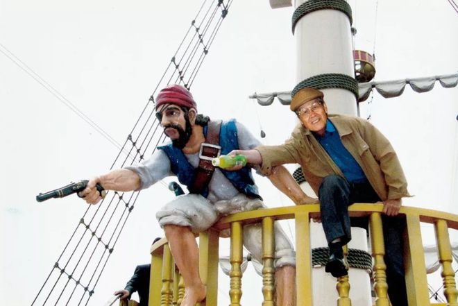 2005年,访问日本,在游乐园“海盗船”上玩一把