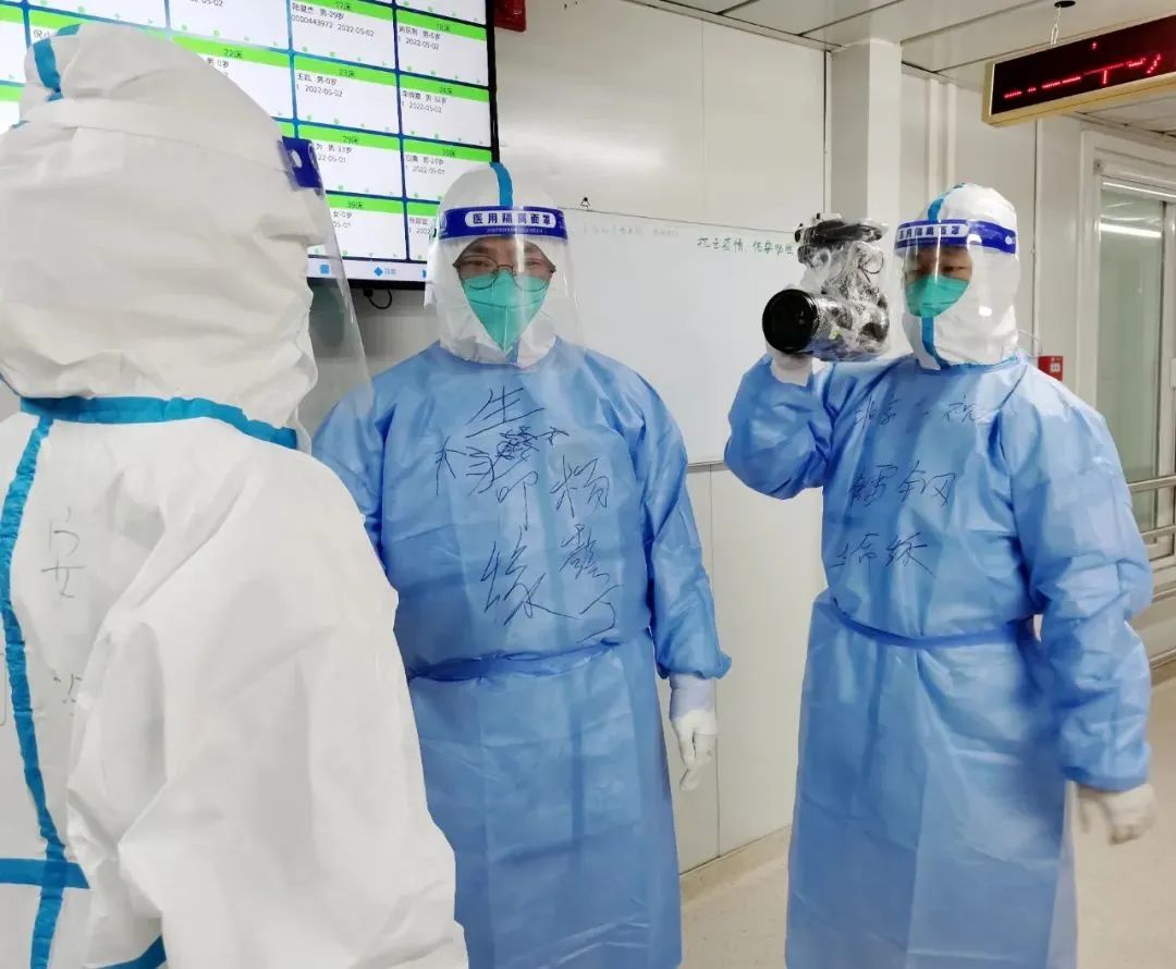 在这次报道中,给他们留下最深刻印象的就是小汤山方舱医院在感控上的严格要求,紧盯记者进出隔离区的每个环节。为了能够顺畅的进行拍摄,不留感控漏洞,杨懿丁与侯雷钢严格遵照防控要求,不论是在隔离区,还是在酒店、通勤大巴上,都反复讨论感控要点。在本次报道中,两名记者总共穿脱防护服280余次,做到防护无遗漏。