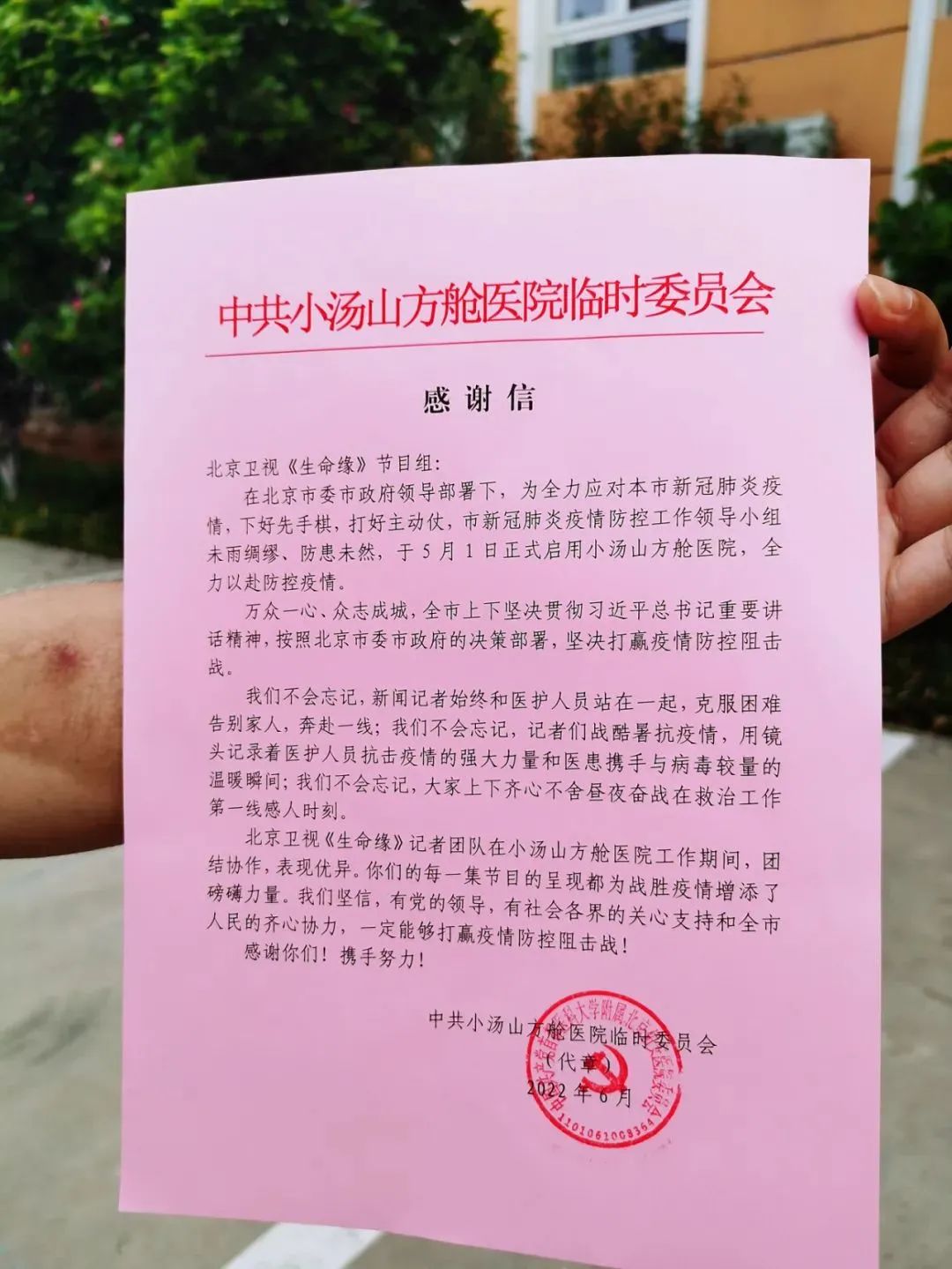 北京卫视《生命缘》记者杨懿丁与摄像记者侯雷钢于5月3日下午从北京广播电视台出发,直接前往小汤山方舱医院。由于记者杨懿丁与侯雷钢有大量进入红区拍摄的经验,他们在进入小汤山方舱医院后迅速开展拍摄工作。并在5月4日凌晨3点,发回了小汤山方舱医院的第一条抗疫新闻报道《方舱医院指挥部》。
