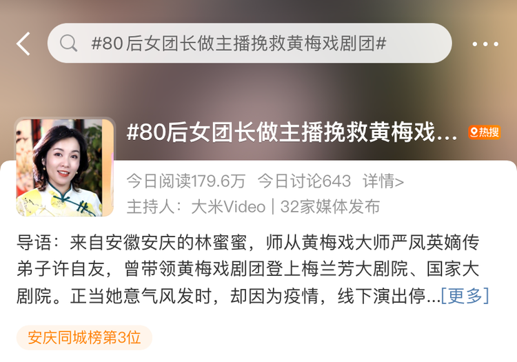 #80后女团长做主播挽救黄梅戏剧团#的话题
