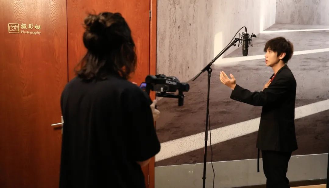 江阳在摄影棚拍摄MV现场
