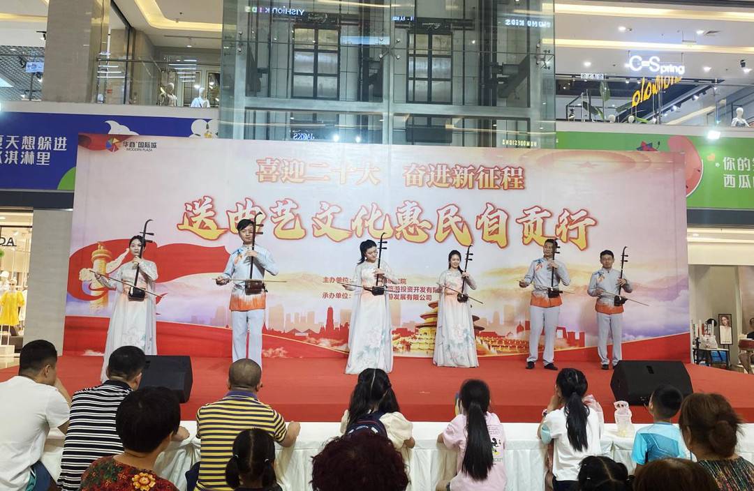 30日上午9时许,随着省曲艺研究院表演的曲艺《春光好》登上江姐故里红色教育基地舞台,演出正式拉开序幕。在悠扬的乐曲声中,演员们手持瓷盘和竹筷,边敲边唱,极具地方韵味的表演将游客和附近居民纷纷吸引了过来。