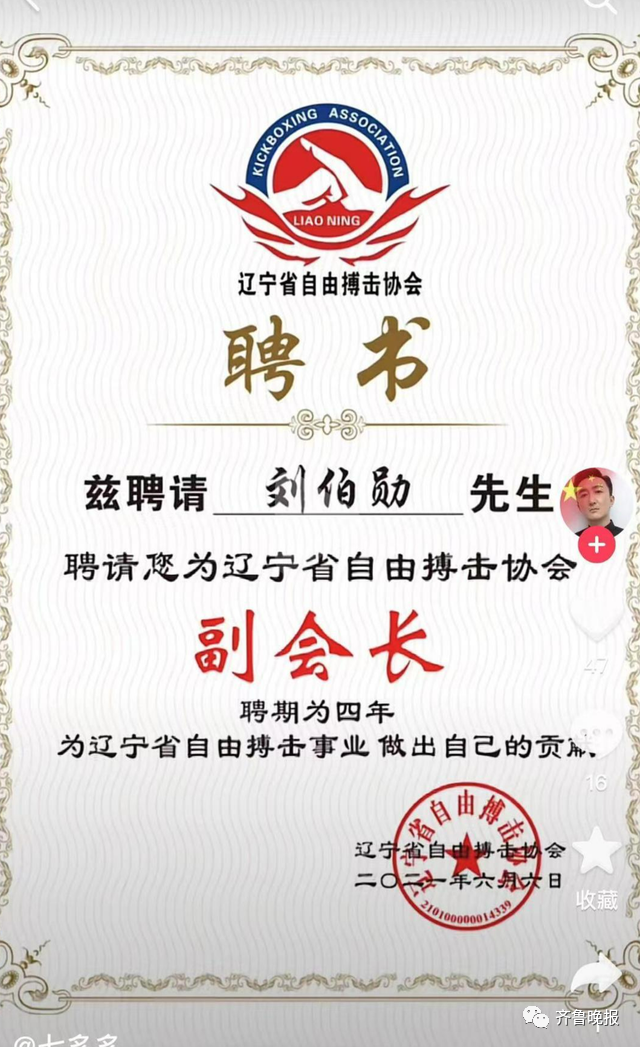 记者发现,刘伯勋家庭幸福,春节还分享了一家人在一起的照片。他平日喜欢运动,去年还被聘为辽宁省自由搏击协会副会长,并常在自己的社交平台上发布运动健身的照片和视频。