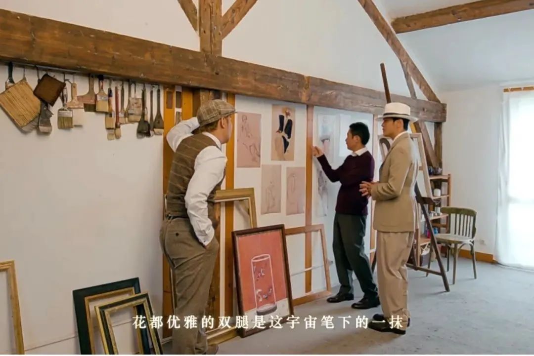 周杰伦带莫奈看中国宋代荷花图的细节,