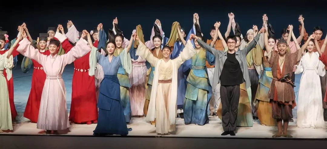 演出结束后,一轮又一轮的掌声如潮水般涌来,最热烈的一场,台上的演员们整整谢幕了五次,观众沉浸在青绿山水的古典意境中久久不愿离去。