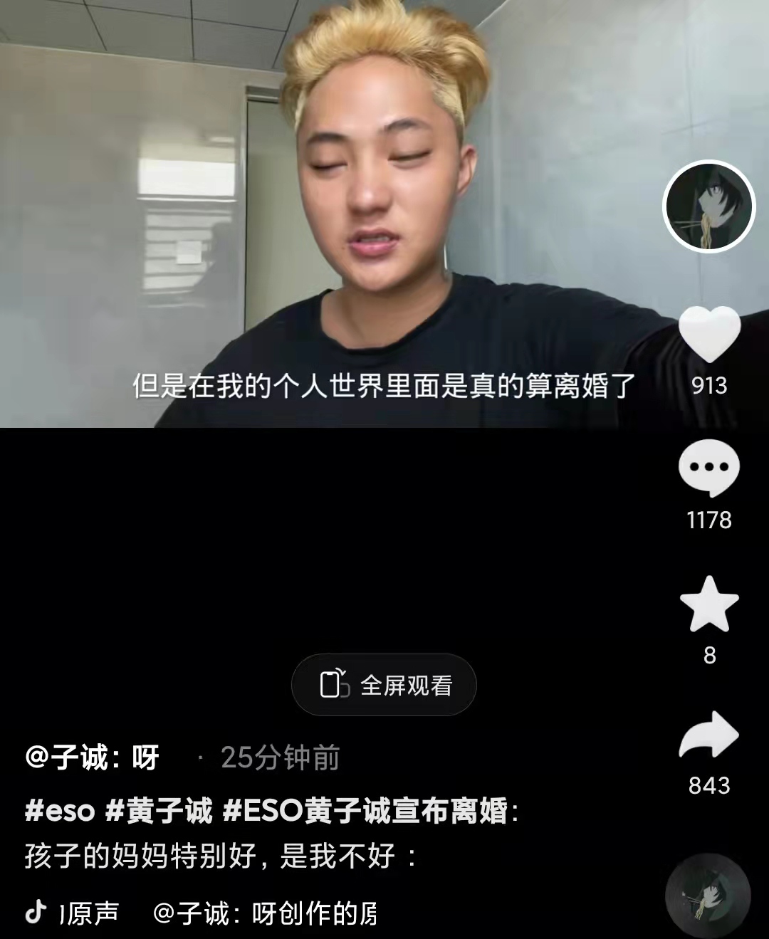 8月12日,曾一度登上热搜的山寨男团ESO其中一名成员黄子诚官宣自己离婚,他将录制的视频发布到社交平台上,郑重的表示自己已经离婚,还表示自己这几天在团里的状态非常的差,经常的失眠,心情也非常的不好,而对于他发的视频网友们也是议论纷纷。