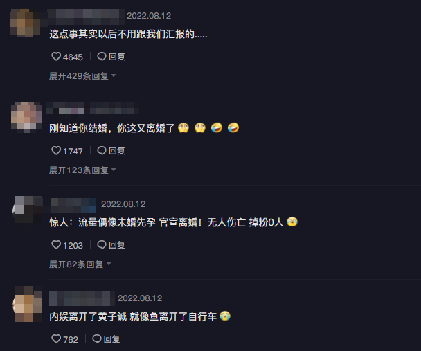 而网友们也是纷纷评论,有人说:这点事其实以后不用跟我们汇报的.....也有人说:刚知道你结婚,你这又离婚了,甚至还有人说道:惊人流量偶像未婚先孕 官宣离婚!无人伤亡 掉粉0人,大都是一些调侃的言论。