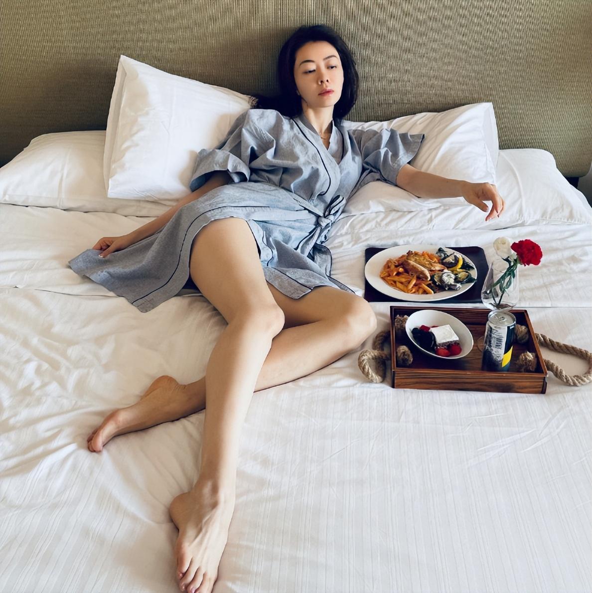 在另一张照片中,她换了一种姿势,更加的妩媚动人,尤其是她将眼睛微闭,就宛如童话中的睡美人一般,这颜值也太能打了吧,完全就不像是42岁的女人,反而更多的像是少女一般,而且她还将开叉浴袍打开,露出那双超吸睛的美腿,十分纤细,这难道就是人们常说的筷子腿吗,这也太性感了吧,真不知道姐姐是怎么保养的,真是肤白貌美大长腿。