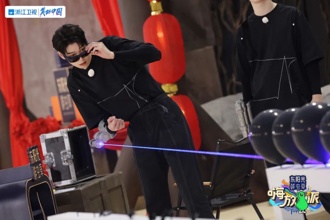 而最“抢手”的角色要数肩负“抢亲”戏份的“大壮”。作为第一幕剧情的动作戏担当,“大壮”需要手持激光枪,打爆新郎“黑山”布下的“气球侍卫”,带走小美。要知道,激光具有定向发光、亮度极高、颜色极纯、能量极大的特点,当黑色气球受到激光的照射,便会吸收其能量被烧破。为了“选拔”最符合“大壮”的人选,嗨放Boys展开史无前例的激光枪“射击”大赛,他们摆出自认为最帅气的姿势,瞄准黑气球列阵,究竟谁会“竞演”成功?