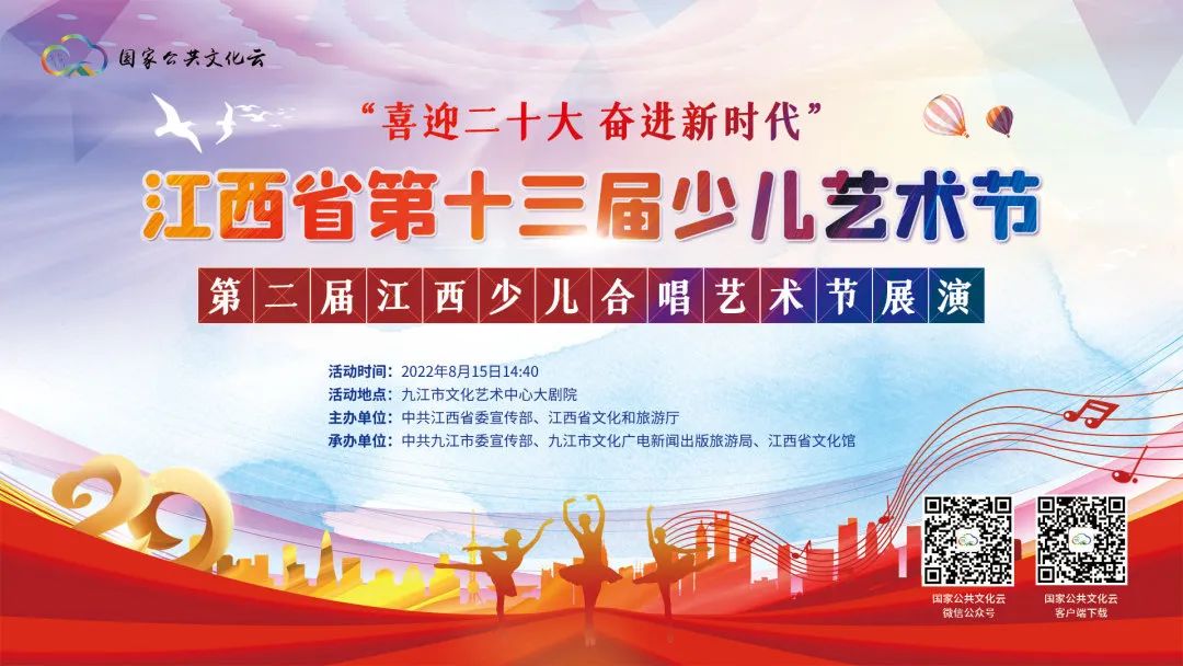 “喜迎二十大 奋进新时代”江西省第十三届少儿艺术节·第二届江西少儿合唱艺术节展演视频已上线至国家公共文化云,您可以通过以下方式观看精彩视频,赶紧行动起来吧!