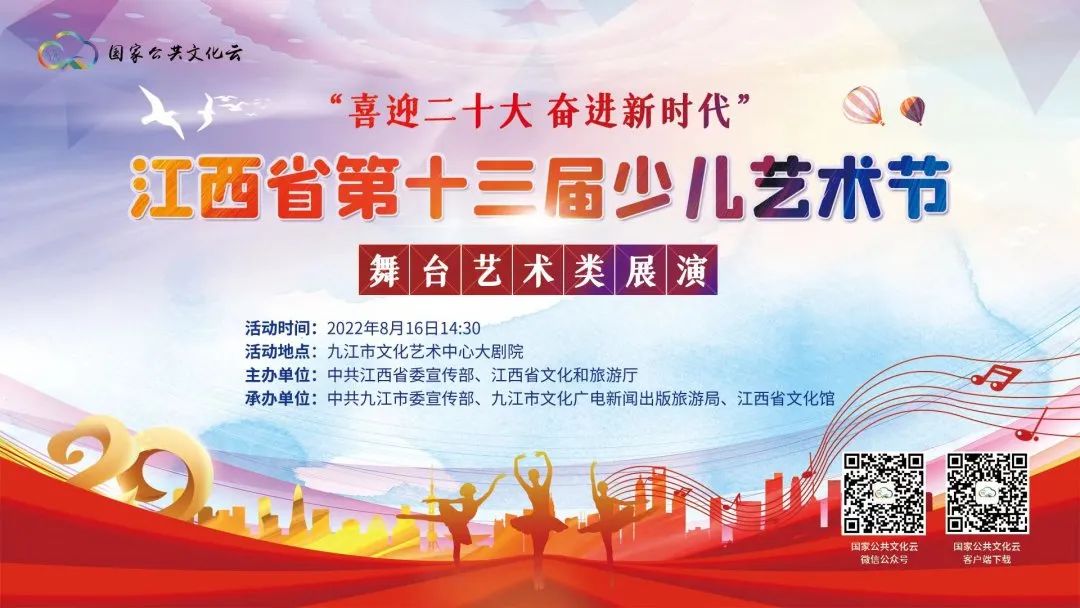 8月15日至17日,由中共江西省委宣传部、江西省文化和旅游厅、江西省残疾人联合会主办的“喜迎二十大 奋进新时代”江西省第十三届少儿艺术节在九江市文化艺术中心大剧院圆满落幕。
