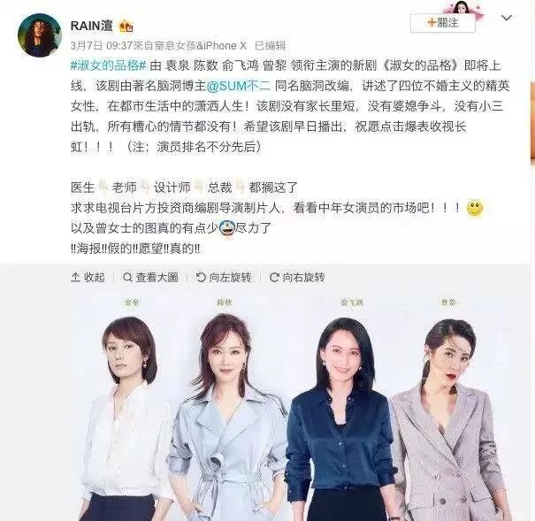 而更让人觉得有趣的,还有两部剧的几位主演,她们有着和剧里一样的女性魅力和自由灵魂,正如前几日「那英金句11周年」,那句:「最烦装X的人!」坦率霸气。