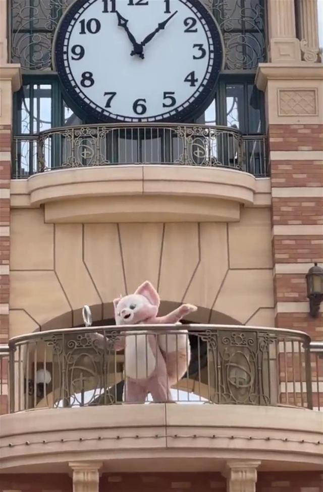 玲娜贝儿在钟楼上打招呼的时候,以配音方式开口说话(网络视频截图)