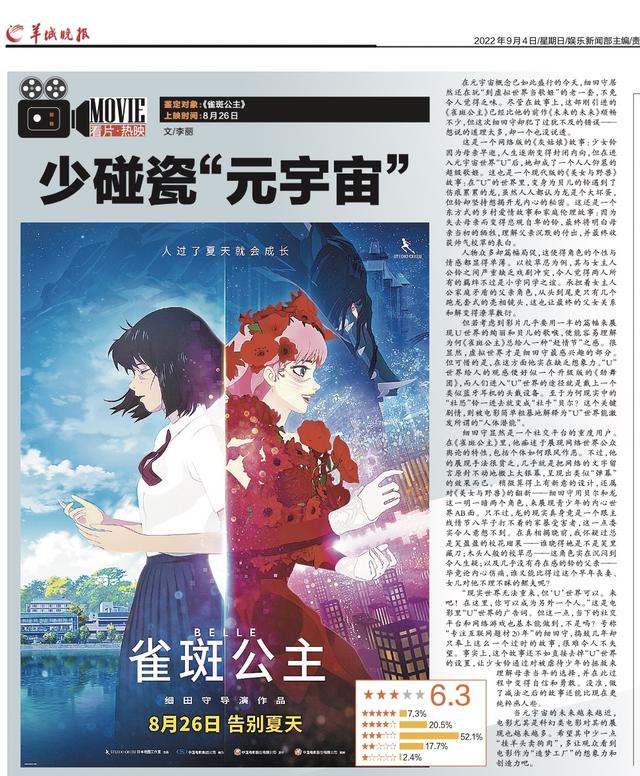 在元宇宙概念已如此盛行的今天,细田守居然还在玩“到虚拟世界当歌姬”的老一套,不免令人觉得乏味。尽管在故事上,这部刚引进的《雀斑公主》已经比他的前作《未来的未来》顺畅不少,但这次细田守却犯了过犹不及的错误——想说的道理太多,却一个也没说透。