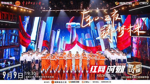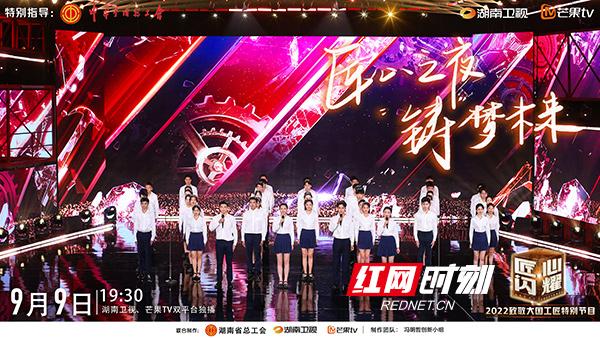 9月9日晚,湖南卫视周六黄金档,随着耳熟能详的“咱们工人有力量”唱响,一场“别开生面”的综艺节目——《匠心闪耀——2022致敬大国工匠特别节目》开播。
