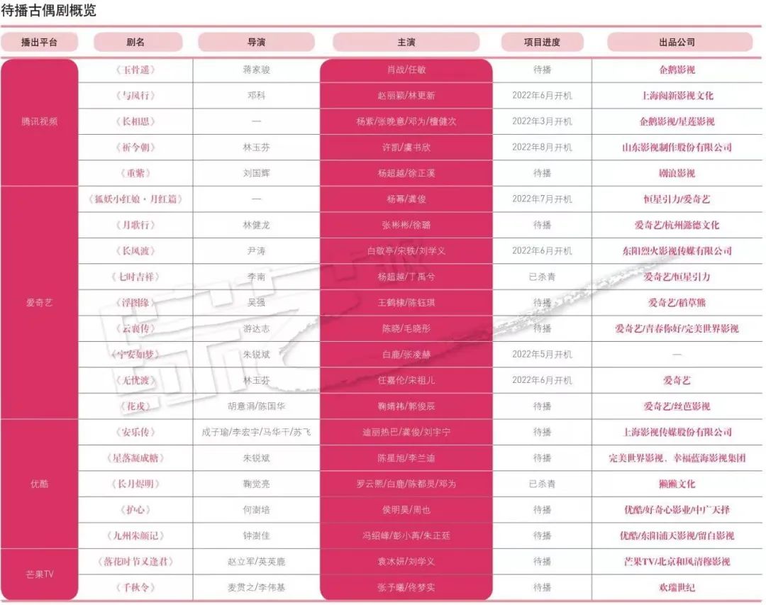 古偶剧的高质量发展,需要持续、稳定、优质的内容输出。接下来,各平台还有大量古偶剧待播,涵盖奇幻、仙侠、神话、爱情等不同题材类型。其中不少项目由知名IP改编,会聚了业内头部制作公司。未来,能否再现今夏的“古偶热”,有待市场检验。