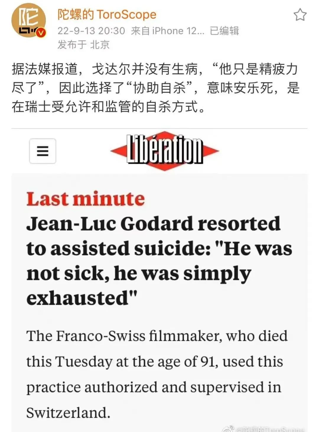 因为,按照《解放报》的消息,戈达尔其实是安乐死的。