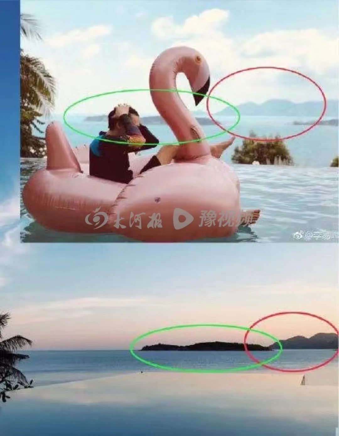 李易峰与某女网红社交平台所发照片对比图,网友质疑他们同游苏梅岛