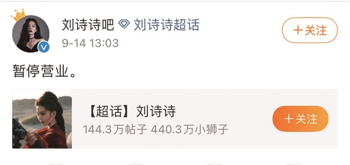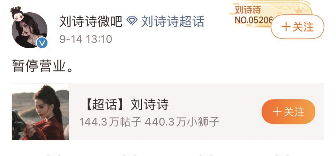 从9月14日起,这几个大站同时宣布不再更新刘诗诗的相关工作信息,也不再维护艺人相关数据。从刘诗诗粉丝在相关文章留言区的交流来看,“暂停营业”主要是针对《一念关山》出品方。