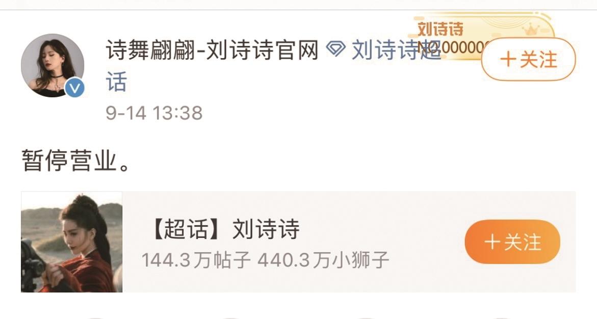 记者注意到,这几个“暂停营业”的大站都转发了工作室的这条回应,但没有更新与刘诗诗有关的其他信息。