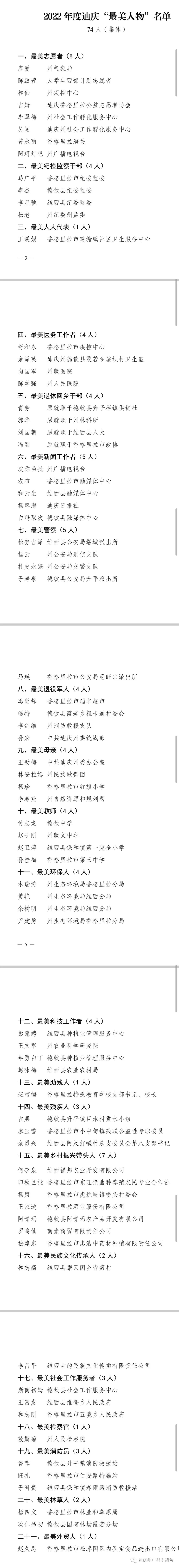 赞!74人入选2022年度迪庆“最美人物”