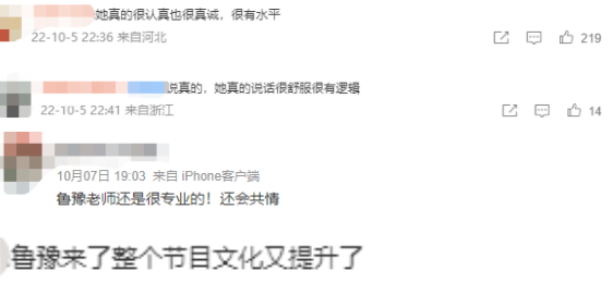 鲁豫的出现,虽然并不搞笑,但是却弥补上了《脱口秀大会》一块短板,让节目更平衡了。