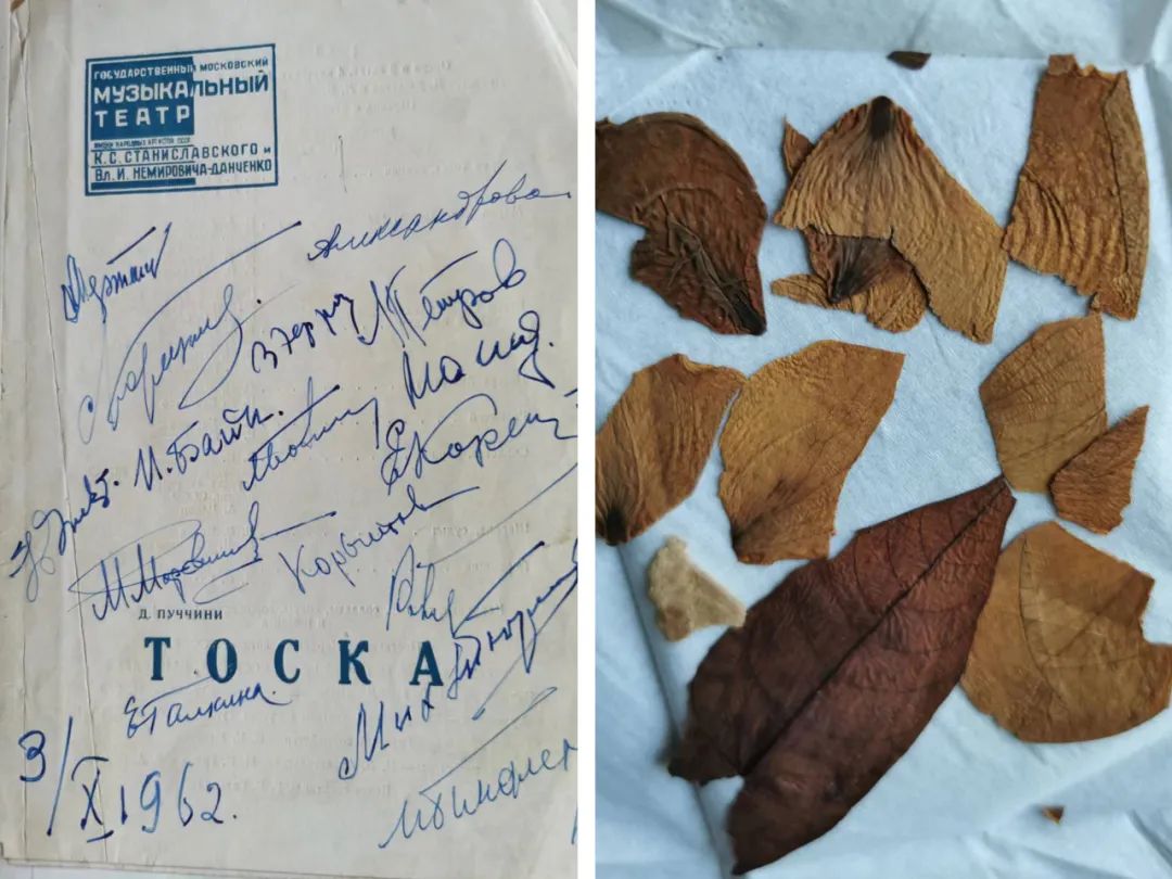 郑小瑛保存的《托斯卡》所有演员签名和乐队献给她的鲜花花瓣