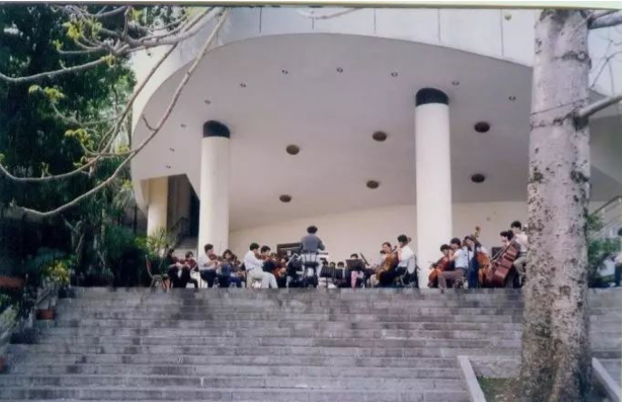 最初乐团排练厅在鼓浪屿经贸干校废弃校址上的礼堂,之后还借用过一个荷花歌舞厅,白天乐团排练,晚上是人们唱KTV的地方。