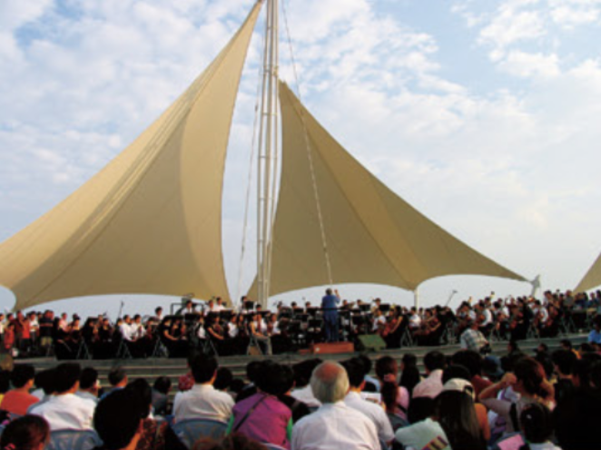 厦门环岛路有一个音乐广场,郑小瑛在爱乐乐团时,每年的“五一”“十一”假期,乐团都会在那里举办惠民音乐会,是不收钱的,很多市民以及旅客围在底下,十分热闹,一边是山一边是海,叫做“山海交响”。