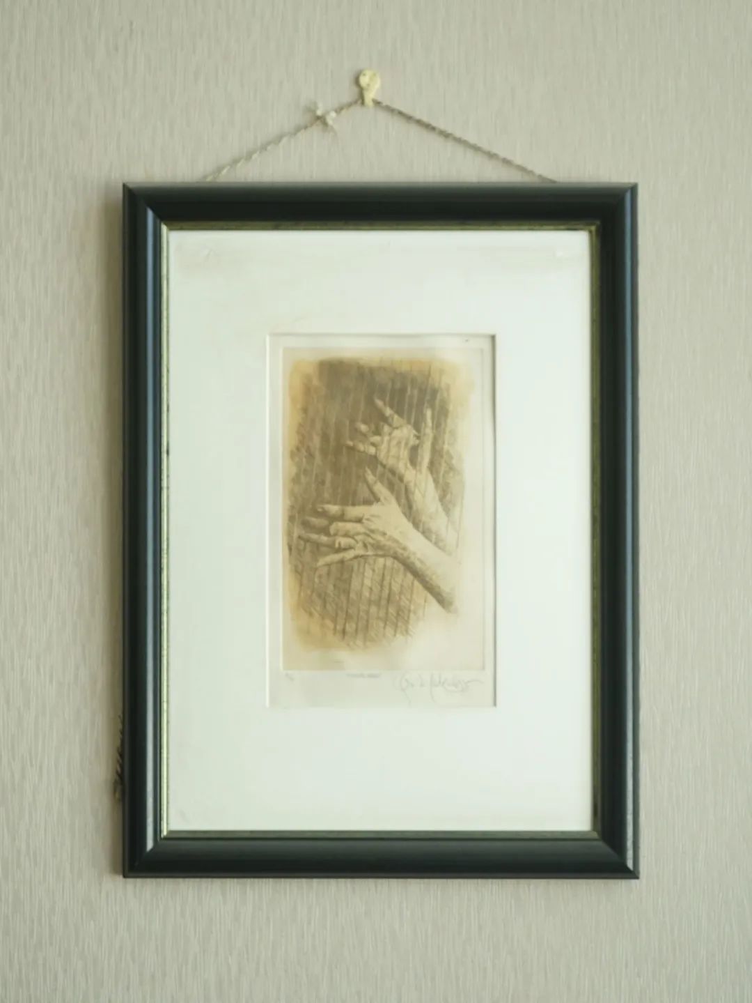 郑小瑛的客厅里挂着一幅钢笔小画,是芬兰画家画的一双弹竖琴的手,题词是“the singing hand”(会唱歌的手),这是芬兰歌剧协会主席雷维尔夫人特意为郑小瑛选购的,意思是她也有一双会唱歌的手,突破了语言的障碍,高效和不同国家的演奏员沟通。