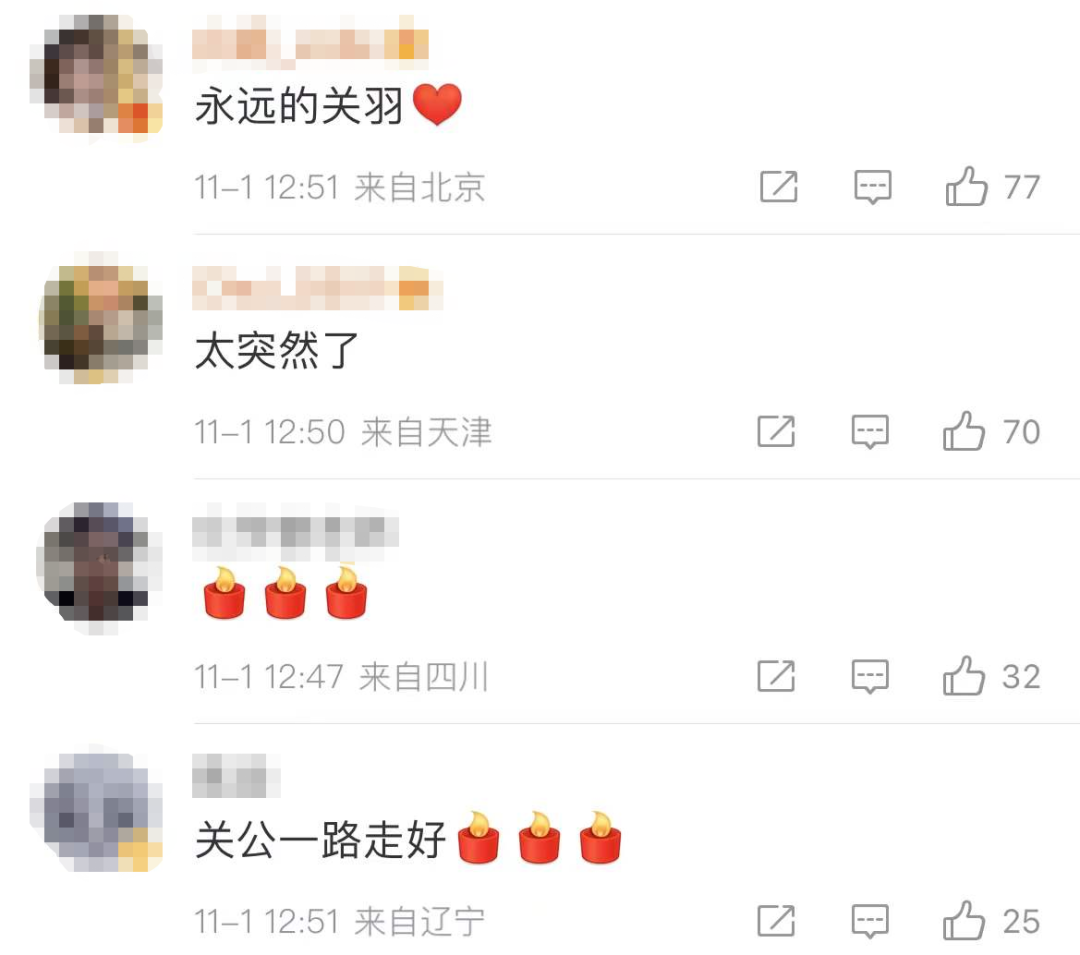 关羽扮演者陆树铭11月1日上午去世,享年66岁。消息传出,震惊圈内圈外,就在国庆前,他还在个人微博为中国女篮的比赛加油。