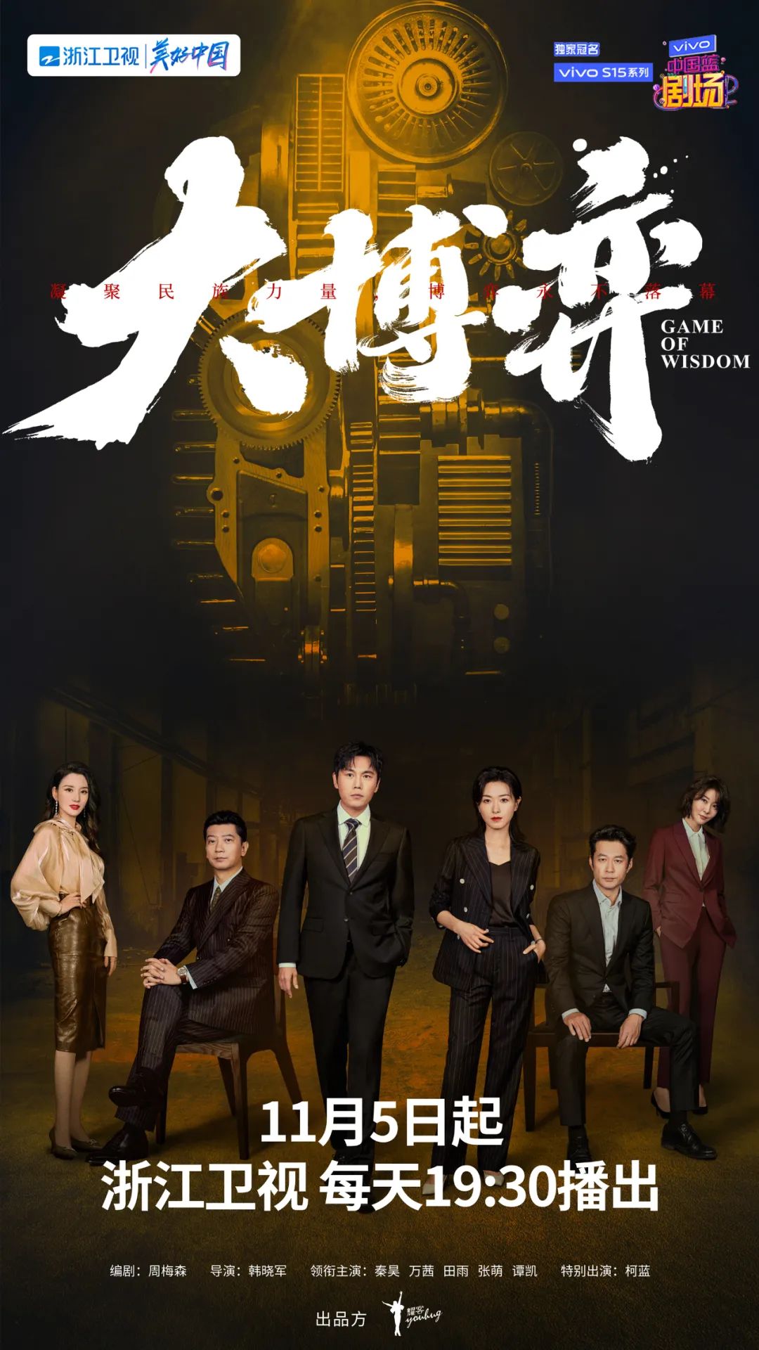 周梅森编剧,韩晓军执导,秦昊、万茜、田雨、张萌、谭凯、柯蓝主演的现实主义题材力作《大博弈》今日正式宣布定档。剧集讲述了主人公面对国内外诸多对手的步步紧逼,带领一家濒临破产的百年老厂成功打进国际市场。本剧将于11月5日起登陆浙江卫视中国蓝剧场,每天19:30播出。