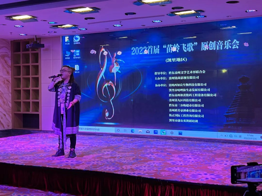 11月4日下午,“2022凯里地区首届‘苗岭飞歌’原创音乐会”在凯里西出口文化园精彩上演,演绎了由凯里地区音乐人原创的音乐作品。