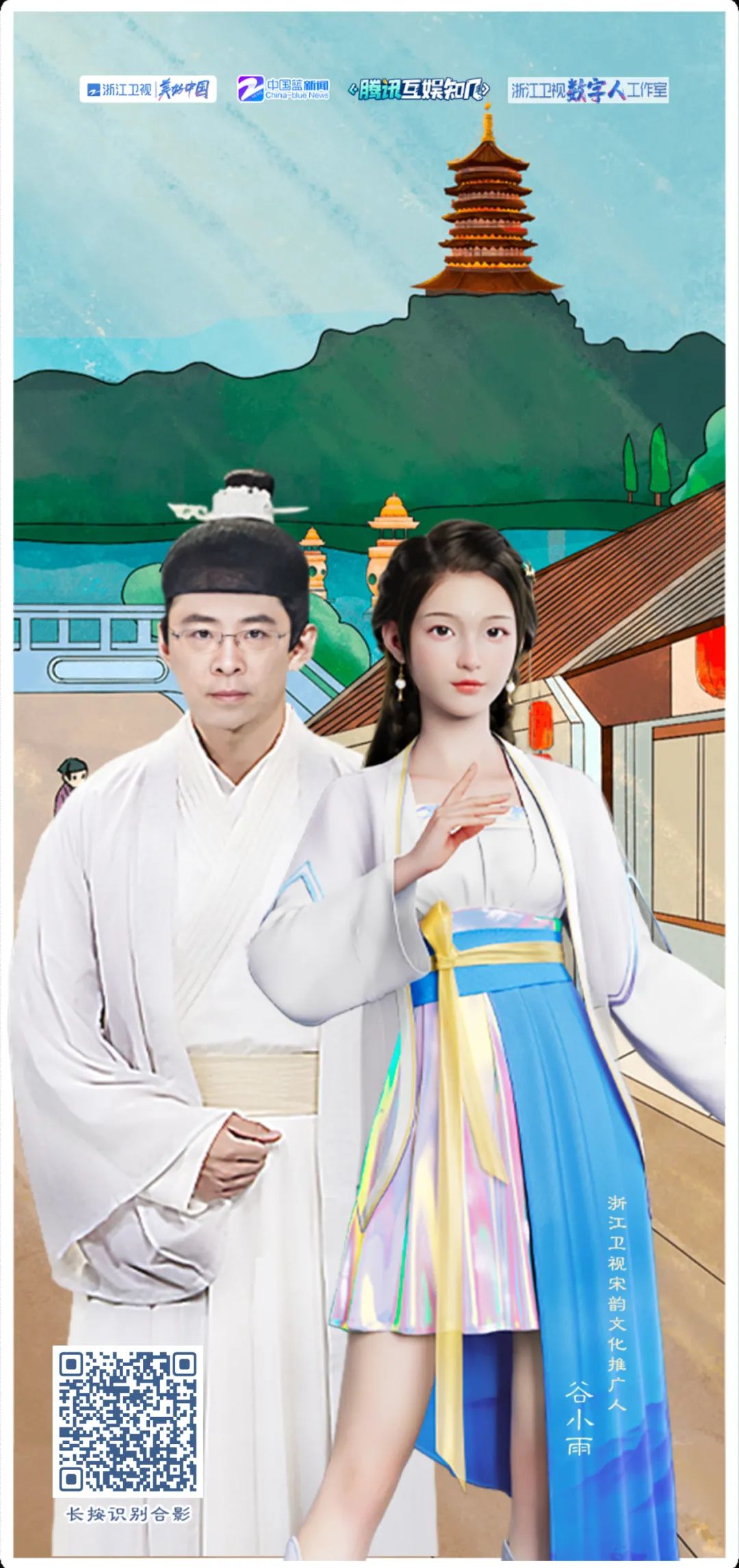 此次特别设计了“谷小雨邀你云上合影”互动功能,来看看浙江卫视的主持人们和谷小雨的合影效果吧!