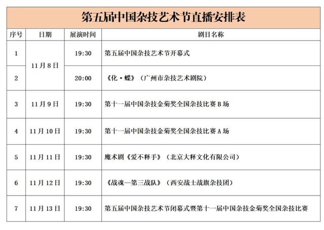 为配合疫情防控要求,本届艺术节各展演剧目和比赛将全部通过电视、网络直播的形式向广大观众呈现。届时,河南日报、顶端新闻、大河报、大河网等将通过自各平台进行网络直播,邀您“云端”尽享中国杂技艺术之美。